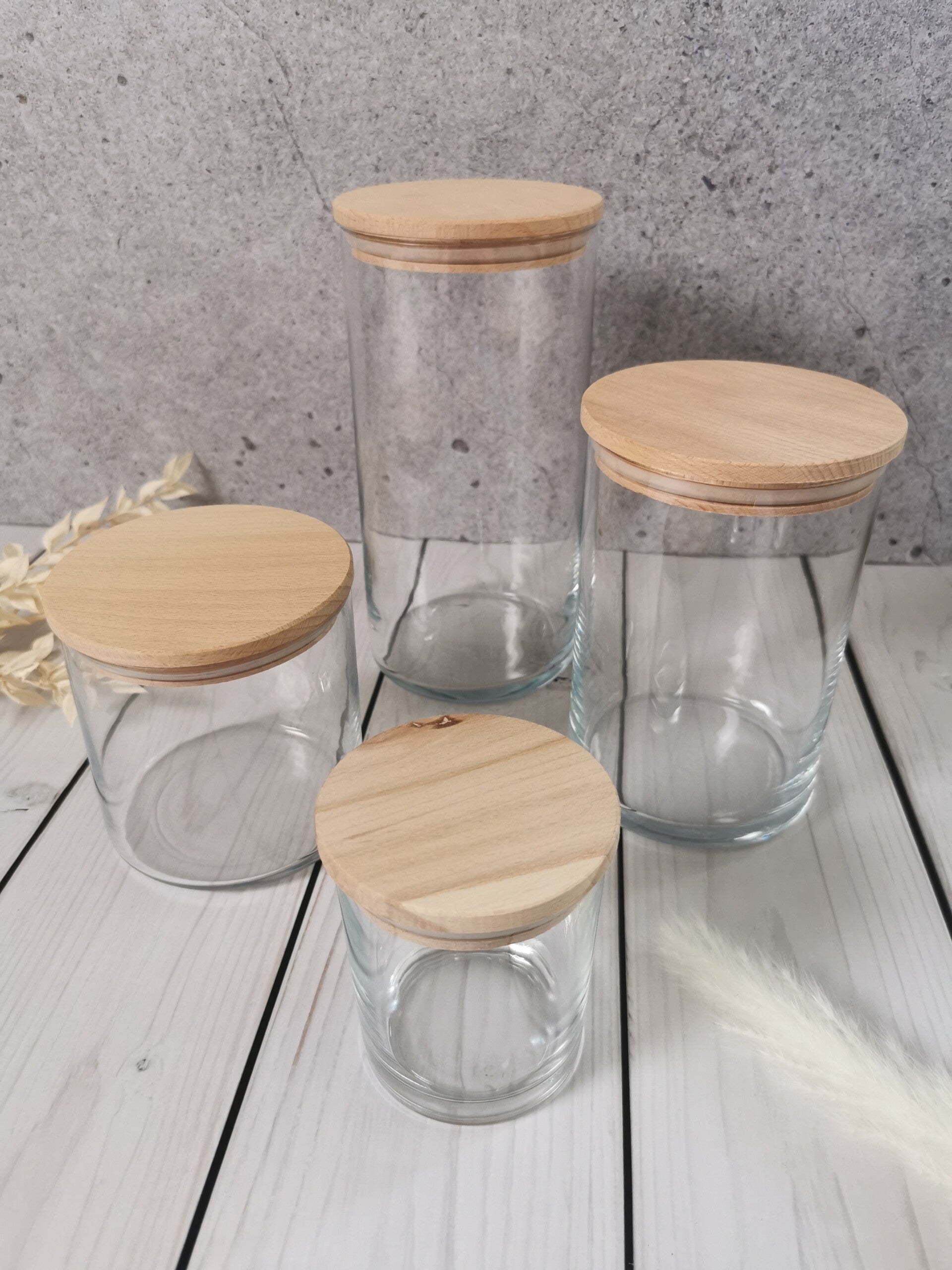 Material: Glas, Buchenholzdeckel mit Dichtungsring